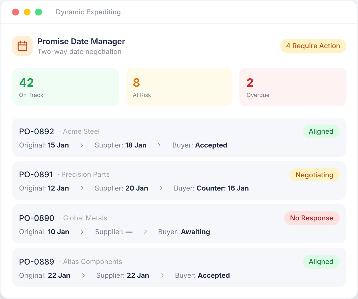 Reduce expediting. Improve OTIF. Replace reactive chasing with proactive control.